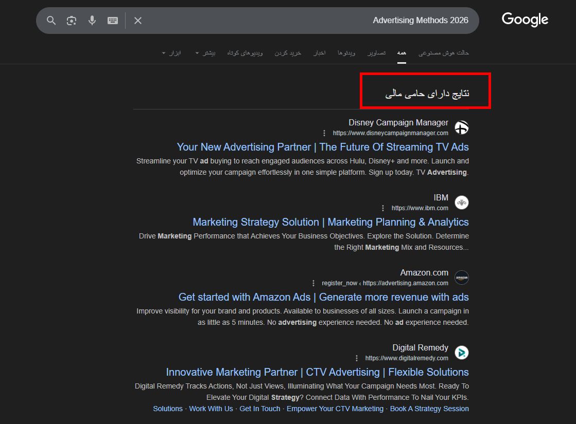 • گوگل ادز (نتایج تبلیغاتی شبیه نتایج ارگانیک)