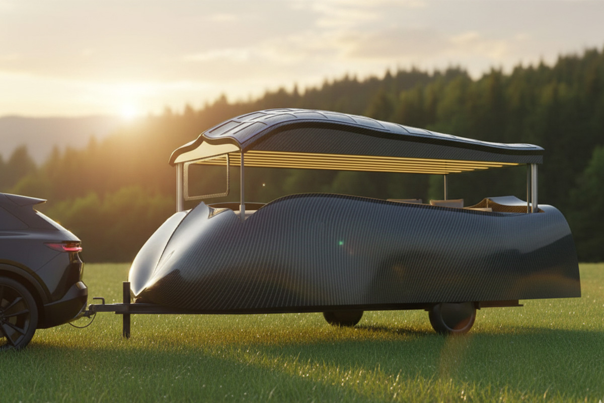 در نگاه اول، این کاروان یک تریلر مسافرتی آیرودینامیک و جمع‌وجور است که به راحتی پشت هر خودرویی، به‌خصوص خودروهای برقی کشیده می‌شود. طراحی هوشمندانه‌ آن با استفاده از مواد کامپوزیتی پیشرفته، هم وزن را به شدت کاهش داده و هم بهینه‌سازی قابل‌توجهی در مصرف سوخت یا انرژی خودروی حامل ایجاد می‌کند. این طراحی همچنین به افزایش پایداری و ایمنی تریلر در جاده کمک می‌کند؛ اما جادوی اصلی زمانی اتفاق می‌افتد که به مقصد می‌رسید.