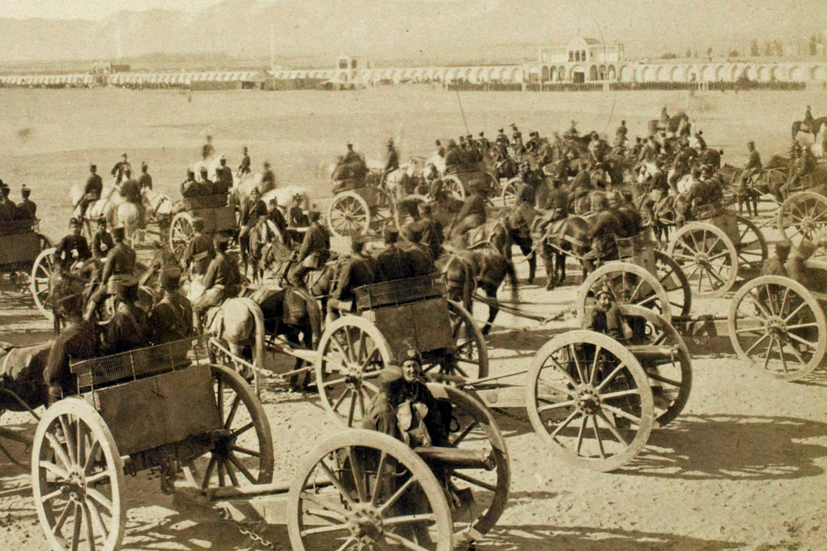 تصویری نایاب از توپهای جنگی در میدان مشق قاجار