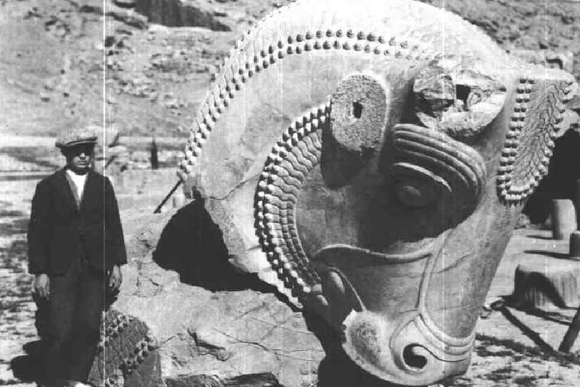 تصویری از سر گاو عظیم که بیش از ۲۴۰۰ سال قدمت دارد و نشان‌دهنده شکوه و جلال امپراتوری هخامنشی است، این مجسمه غول پیکر در ورودی تالار صد ستون در تخت جمشید قرار داشت.